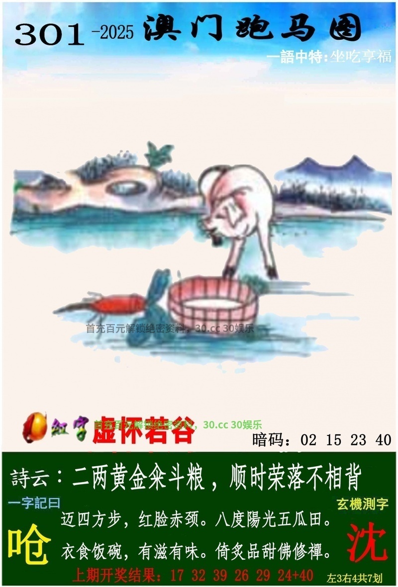 | 301期:肉菜草肖(吃肉吃菜)开:牛05错 |