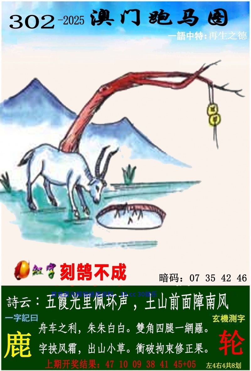 | 304期:肉菜草肖(吃草吃菜)开:马48准 |